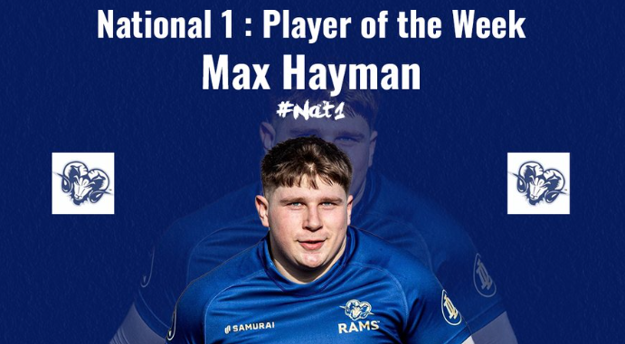 Max’s gong is the first time Rams have picked up the award since Week Three of the campaign when Fraser Honey took the honours following the 33-0 triumph against Sale.