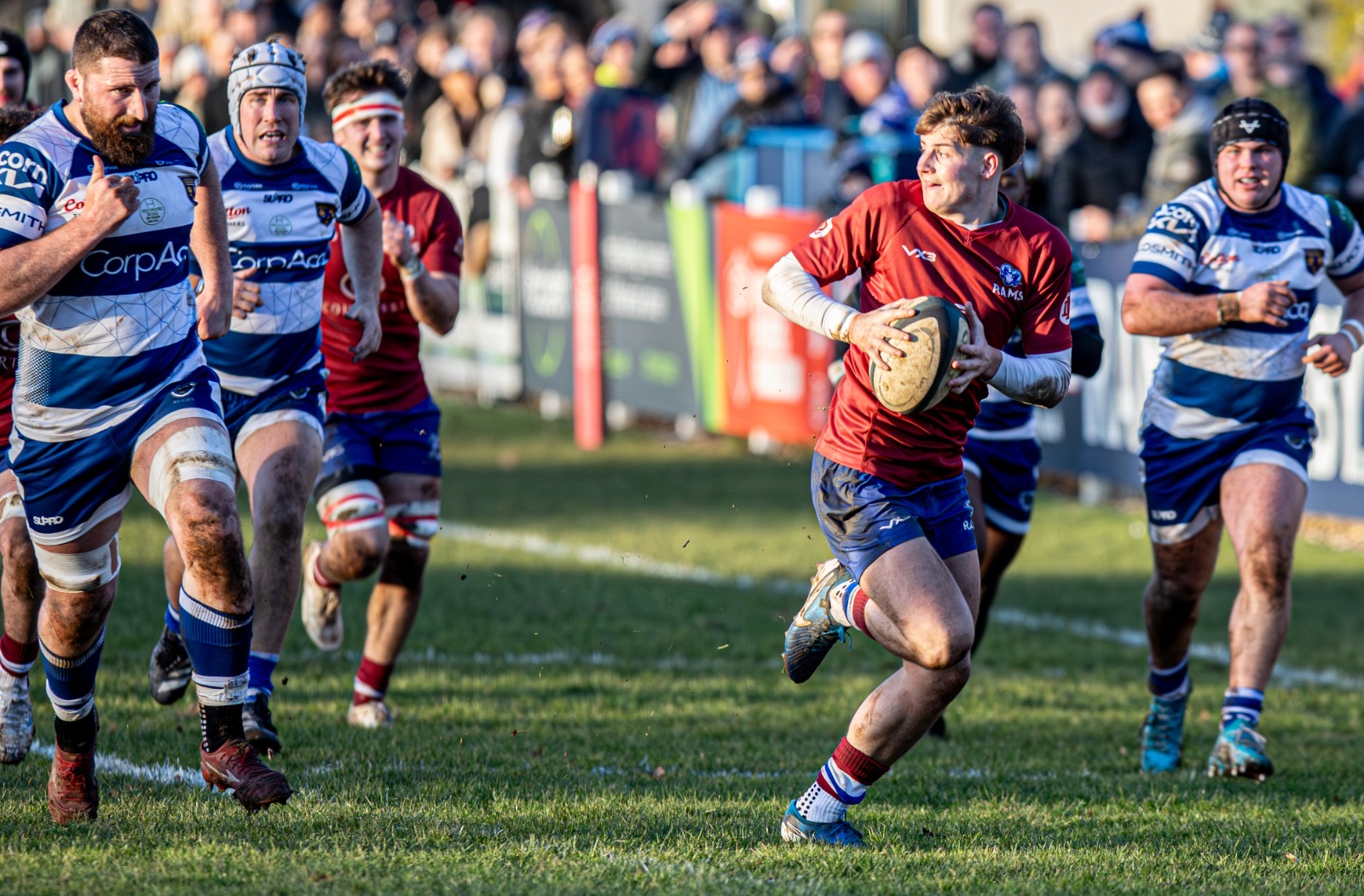 The scrum-half repeated the trick early in the second period, the hosts pinged for not releasing, but Rams replied as Andrew Lamb’s cross-field kick was collected by Oli Rhoads to touch down on the left.