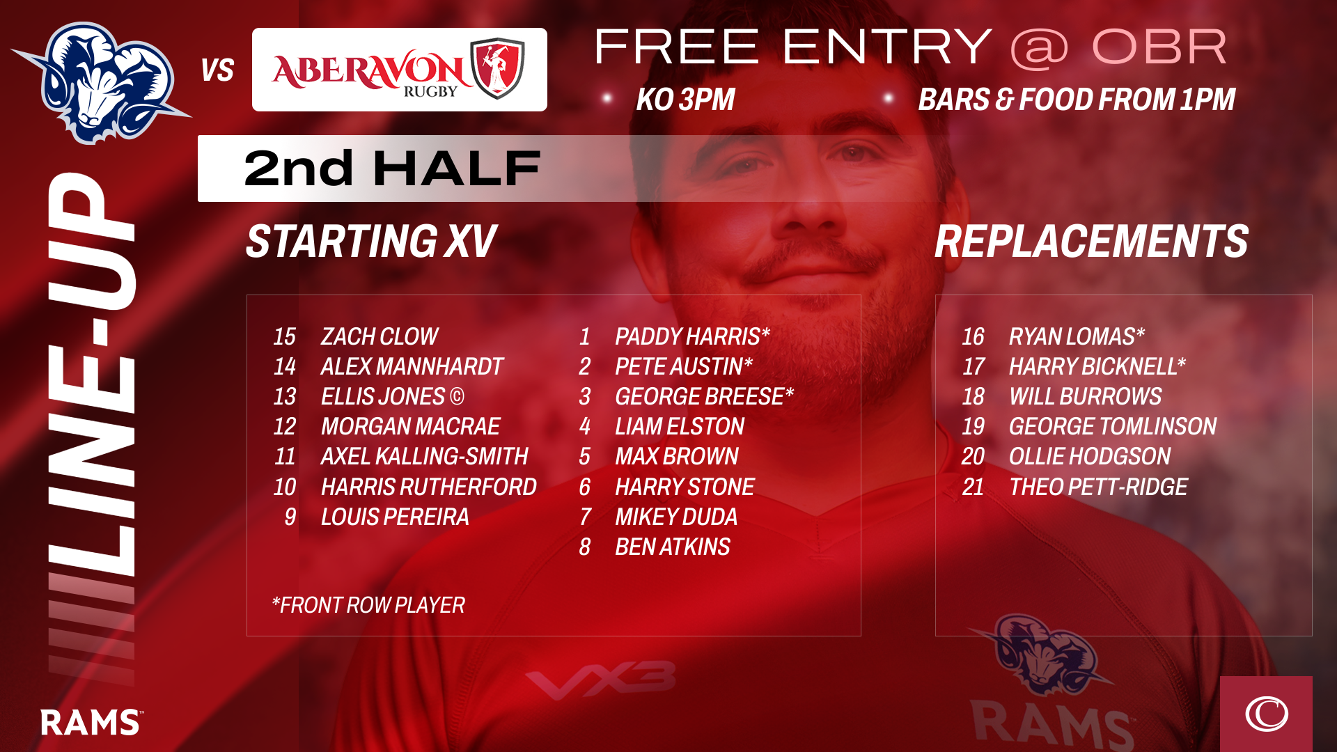 Rams second-half team Vs. Aberavon